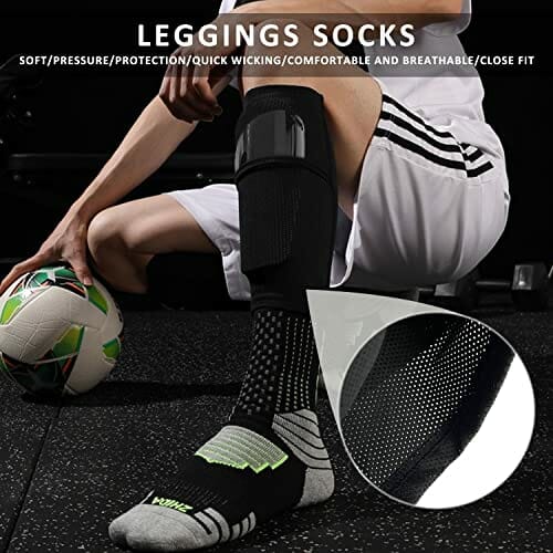 • 【Dopasowanie rozmiaru】 Kieszonkowa konstrukcja skarpet przylega blisko nóg i nie pozwala na bezpośredni ochraniaczy na piszczele, dzięki czemu zapobiega otarciom nóg. Elastyczne skarpety i jeden rozmiar uniwersalny pasują do wszystkich ochraniaczy na nogi większości kształtów nóg.