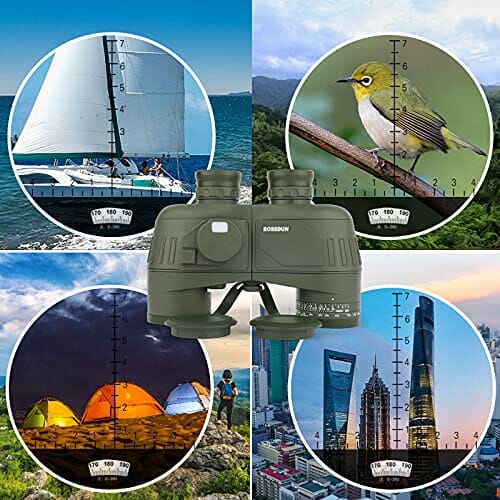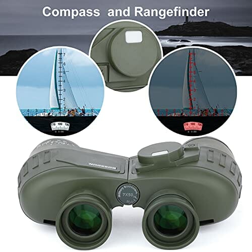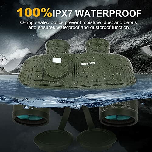 Lornetka 10 x 50 IPX7 wodoodporna lornetka morska do łodzi z podświetlanym dalmierz i kompasem obserwacji ptaków podróż polowanie piłka nożna-soczewka