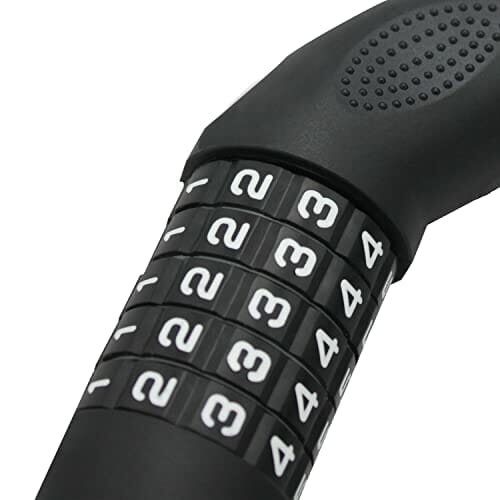 √ Zamek szyfrowy: √ Zamek szyfrowy – zapięcie rowerowe jest połączone za pomocą 5-krotnego zamka szyfrowego, z którego wynika do 100 000 kombinacji numerycznych.