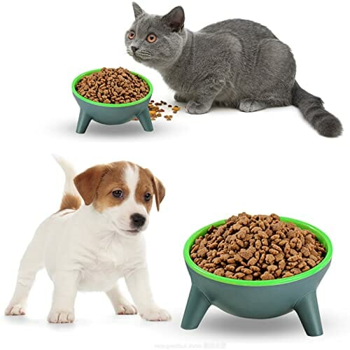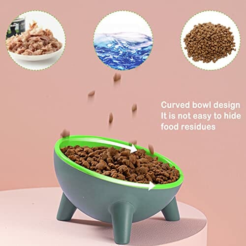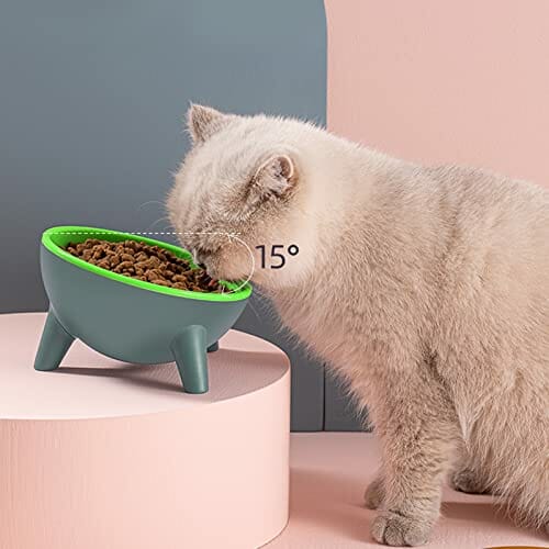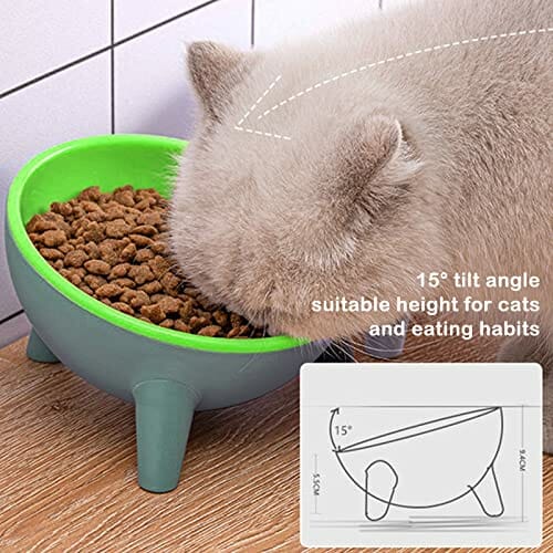 Przechylona 15° miska dla kotów, miska na karmę, podwyższona miska na kark, ochrona karku, antypoślizgowa karma, dla małych, średnich kotów i psów (zielona)