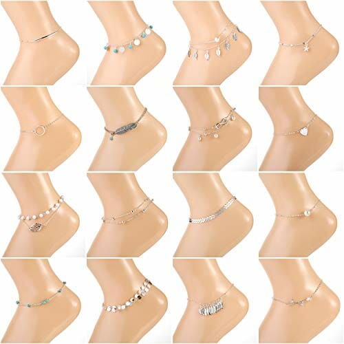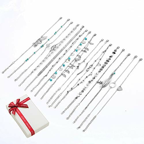 - ♥Verpackung :Das Paket enthält 16 verschiedene Fußkettenketten, die Ihnen mehr Auswahlmöglichkeiten für verschiedene Outfits bieten.Exquisite Set in einem vernünftigen Preis. Quantität und Qualität gesichert. Verpackt in filigraner Geschenkbox, sodass es sich als tolles Geschenk eignet und einfach verstaut werden kann . Ideales Geschenk für Geburtstag, Weihnachten, Valentinstag, Muttertag usw. Großes Geschenk für Weihnachten oder jede Festivalverzierung Sammler.