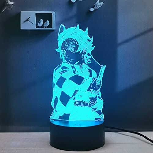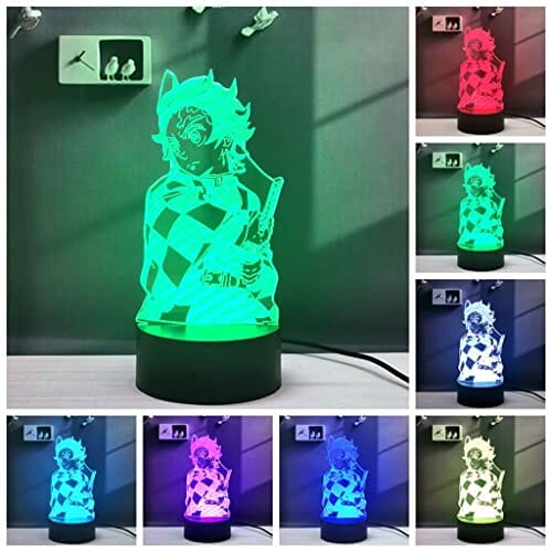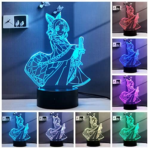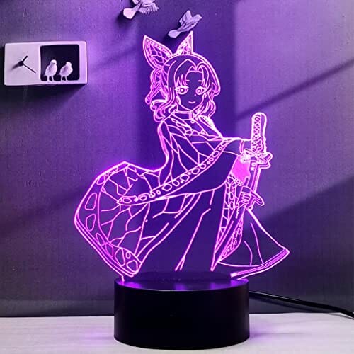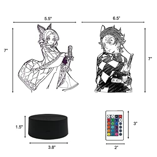 2 w 1,Demon Slayer,Kamado Tanjirou,Kochou Shinobu,3D Illusion LED Lampa Anime,16 kolorów RGB zdalnego,lampka nocna na biurko ładny