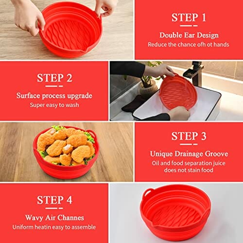 • 【Faltbares Und Verbessertes Bodendesign】 Nicht nur eine silikonschüssel für die heißluftfritteuse, drücken sie sie einfach leicht an und verwandeln sie sie in einen kompakten lebensmittelteller. Zusammenklappbares design, um mehr platz für ihren schrank zu sparen, nachdem sie ihr festmahl genossen haben. Verbessertes bodendesign mit gewellten silikonlinien für bessere luftzirkulation und wärmeverteilung.