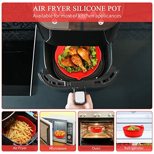 2 Stück Faltbar Air Fryer Silicone Pot, 7,5 Zoll/8,5 Zoll Silikonform Heißluftfritteuse, Silikon Backform Für Heißluftfritteuse, Wiederverwendbar Airfryer Insatz, Extra groß Air Fryer Accessories