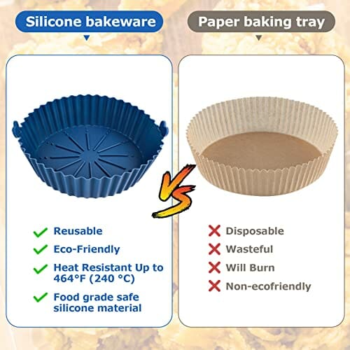 - 【Lebensmittel-grade Kieselgel Material】Die Air Fryer Silicone Pot besteht aus sicherem lebensmittelechtem Kieselgel, frei von BPA, ungiftig und geschmacklos und ist ein ausgezeichneter Ersatz für Papierfolie oder Papier; Hochhitzebeständige Materialien können der hohen Temperatur von 4464° F (240° C) standhalten und sind für Luftfriteusen, Dampfgarer, Backöfen, Mikrowellenherden usw.