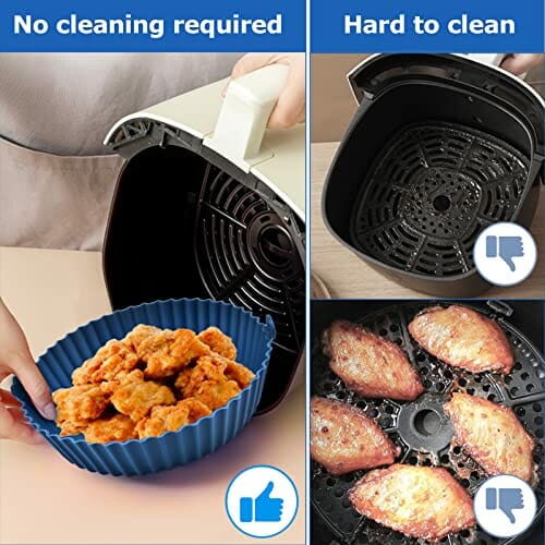 - 【Wiederverwendbar】Die Silikonform Heißluftfritteuse hat eine Antihaftbeschichtung, um die Luft-Pfanne frei von Lebensmittelrückständen, Fett und Schmutz zu halten. Nach dem Kochen müssen Sie nur die Silica-Gel-Pfanne der Luftfriteuse von innen nach außen drehen, die Lebensmittelreste ausgießen oder zur Reinigung in die Spülmaschine geben.