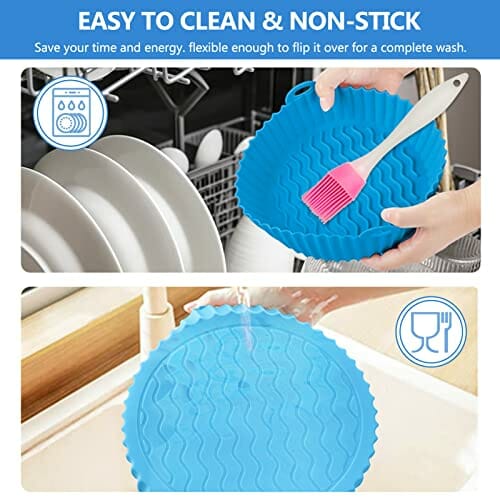 2PCS Air Fryer Liners, Luftfritteuse Silikon Korb, Air Fryer Silicone Pot, Wiederverwendbar Antihaft Luftfritteuse Matten für Backofen, Mikrowelle, Kuchenbackform, Dampfgarer(blau)