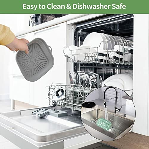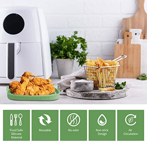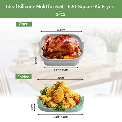 - 【Unverzichtbares Air Fryer Zubehör】Sie erhalten 2 wiederverwendbare Air Fryer Silikoneinsätze (grün + grau). Verwenden Sie unsere quadratischen Heißluftfritteuse halten und genießen Sie gesundes und leckeres Frittiergut ohne klebrige und verbrannte Rückstände. Dieser Silikon Dampfgarer ist spülmaschinenfest und kann auch mit der Hand gewaschen werden. Er ist perfekt für Heißluftfritteuse Zubehör und kann sicher im Ofen und in der Mikrowelle verwendet werden.