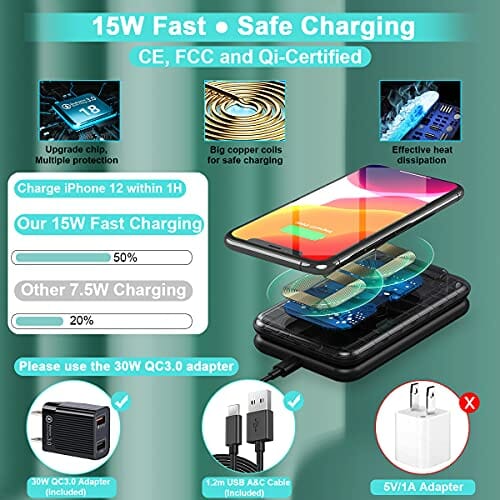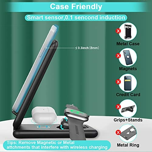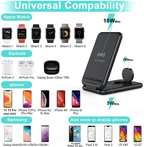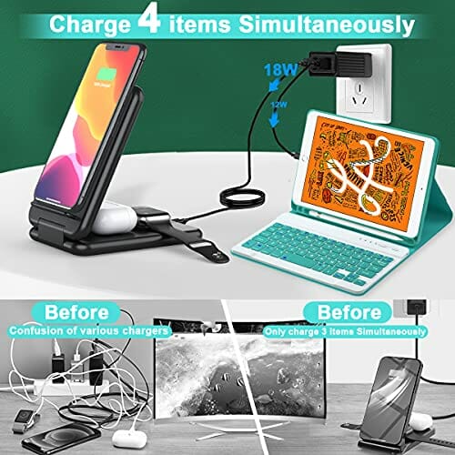 Blsyetec Bezprzewodowa ładowarka indukcyjna 4 w 1, bezprzewodowa ładowarka z adapterem, kompatybilna z iPhone 12/11 Pro Max/XS/XR/X/8/8 Plus, iWatch 5/4/3/2/1, AirPods Pro, Samsung S10 S9 S8