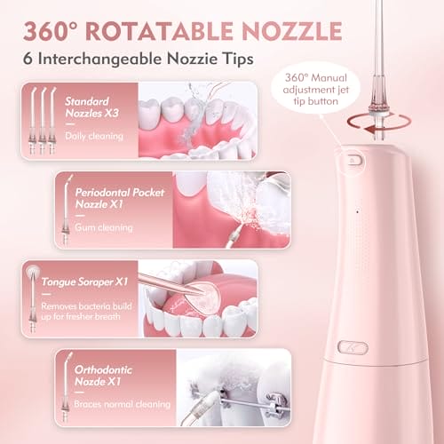 • 4 tryby i 6 dysz natryskowych: ①. Przenośny bezprzewodowy irygator wodny ma 4 tryby, aby zaspokoić potrzeby trybów niskich, wysokich, pulsacyjnych i DIY, aby dopasować się do wszystkich chorób zębów i dziąseł. ②. Ten wodny irygator doustny jest wyposażony w 6 dysz, które mogą zaspokoić Twoje potrzeby w zakresie czyszczenia i wymiany.