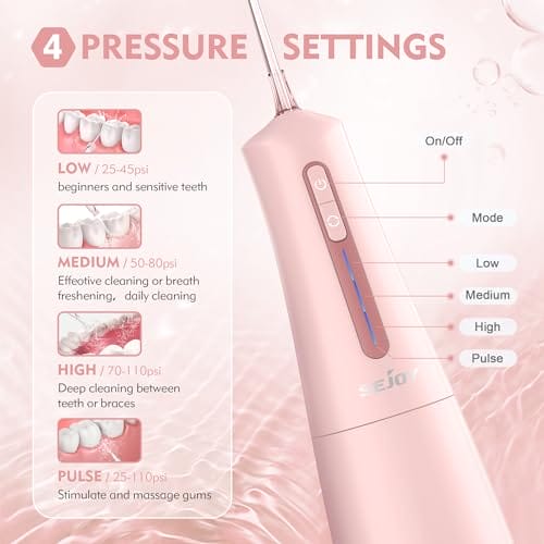 • Głęboko czysty i stabilny poziom ciśnienia wody: Przenośny irygator dentystyczny zapewnia 1400 razy na minutę impuls wody o wysokiej częstotliwości i wysokim ciśnieniu. Średnica otworu dyszy wynosi zaledwie 0,6 mm, co ułatwia czyszczenie między zębami i martwymi narożnikami jamy ustnej. Skutecznie zmywa bakterie i resztki jedzenia, do których nie może dotrzeć tradycyjne szczotkowanie i nitkowanie.