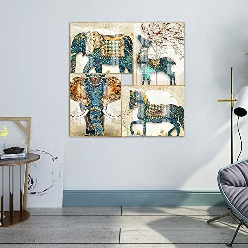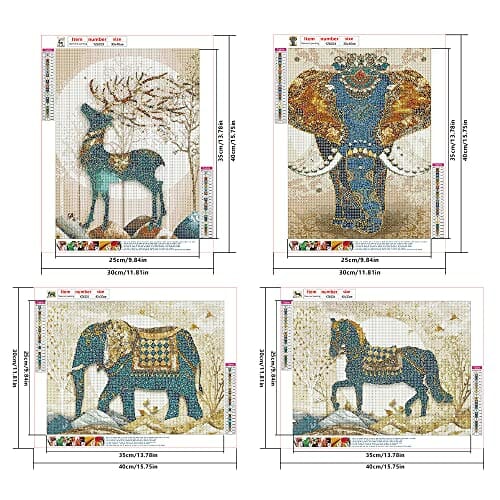 DCIDBEI 30x40CM 4 Pack Diamond Painting Animal – Złoty Niebieski, Koń Jeleń – Cross Stitch Diamenty Okrągły Słoń Luksusowy Lekki Słoń – Dorywczo Zestaw Oryginalny Prezent Do Domu Salon Dekoracji Rzemiosło