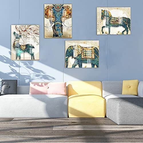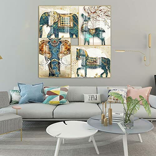 DCIDBEI 30x40CM 4 Pack Diamond Painting Animal Złoty Niebieski, Koń Jeleń Cross Stitch Diamenty Okrągły Słoń Luksusowy Lekki Słoń, Dorywczo Zestaw Oryginalny Prezent Do Domu Salon Dekoracji Rzemiosło.