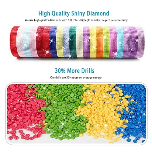 Nasze diamenty są wykonane z wysokiej jakości materiałów, które zapewniają im trwałość i blask. Mają one różne kolory, które dodają głębi i życia Twojemu obrazowi. Dzięki zaokrąglonym krawędziom diamentów, ich nakładanie jest łatwe i przyjemne. Możesz cieszyć się tym kreatywnym procesem, który jednocześnie działa relaksująco na umysł.