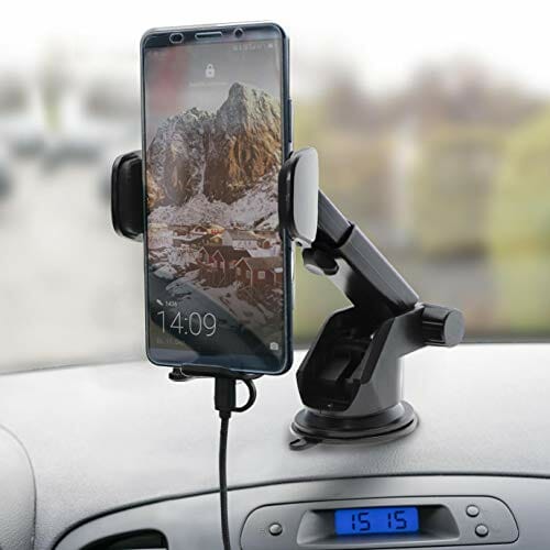 • Bezpiecznie umieść swój telefon w formacie pionowym lub poziomym za pomocą ramienia obrotowego o 360 stopni dla wygodnej, bezproblemowej jazdy