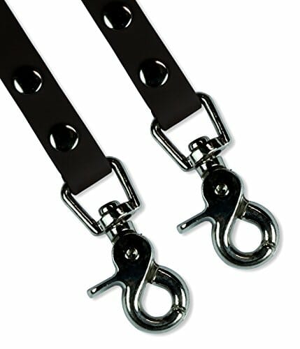 Wytrzymała smycz o: Wytrzymała smycz o długości 5 m z 2 karabińczykami >>> duża, opcjonalna pętla możliwa dzięki drugiemu karabińczykowi i pierścieniowi D