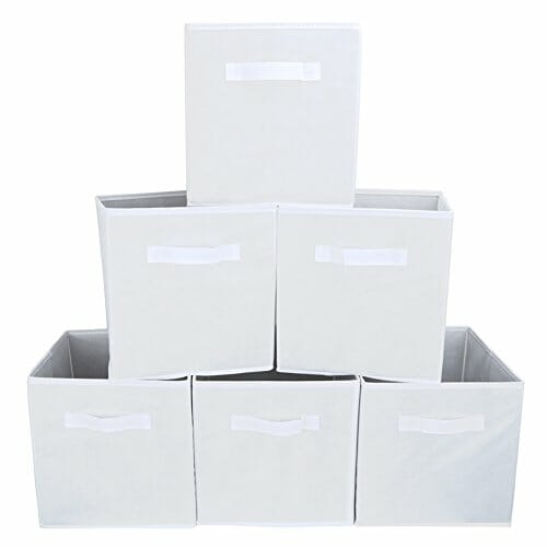 EZOWare zestaw 6 pudełek do przechowywania, składane pudełko i miękki materiał w kształcie kostki, kolor biały