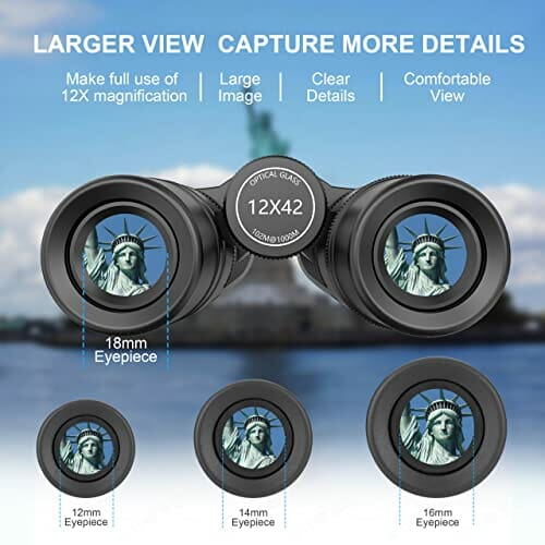 - 【Lebendige, klare und helle Sicht auch bei schwachem Licht】: 42mm große Objektivlinse, sammeln mehr Lichter, liefern eine hellere Sicht; BAK4-Prisma und FMC werden in der Regel in professionellen Ferngläsern verwendet, die Lichtdurchlässigkeit zu erhöhen und gute Farbwiedergabe zu gewährleisten. Alle diese bieten erstklassige Bildqualität