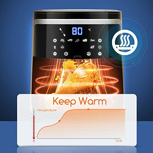 - Der Multifunktions-Heißluftfritteuse von Aigostar bietet Ihnen als idealer Küchenhelfer die Möglichkeit zu frittieren,drehgrillen, braten, dörren, backen, gratinieren, toasten, erwärmen und garen. Das große Volumen von 7 Liter liefert Spaß beim Familienessen mit Pommes und Nuggets garantiert ist. Denn vor allem die Kinder lieben diese fettigen Leckereien, aber auch als Erwachsener freut man sich hin und wieder über die Schnellspeisen.