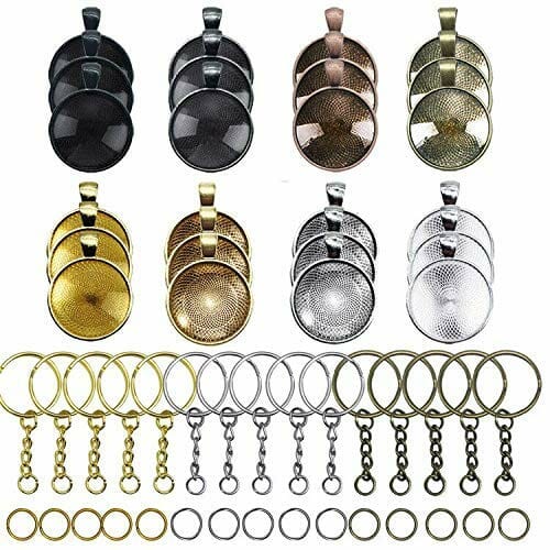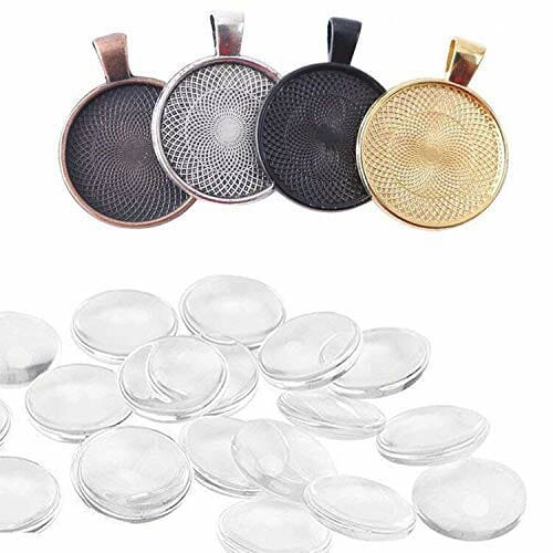 Allazone 24 szt. okrągły wisiorek tacki z przezroczystymi szklanymi okładkami, 15 szt. klamra wisząca do samodzielnego wykonania biżuterii