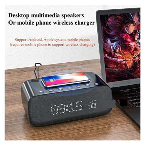 Kompatybilny z wielofunkcyjnym małym głośnikiem Bluetooth Obsługuje bezprzewodowe ładowanie telefonu komórkowego Domowy pulpit Radio FM Stolik nocny Budzik
