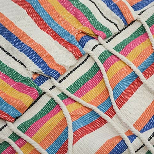 • Krzesło wiszące XL z 2 poduszkami – dwustronne w beżowych i kolorowych paskach: Zawsze wyczaruj nowy wygląd wiszącej huśtawki. Każda poduszka ma wymiary ok. 37 x 37 cm – ze 100% bawełnianą poszewką.