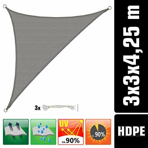 - SONNENSEGEL MIT UV SCHUTZ – Sogar bis 90%. Als XL Balkondach, Terrassenüberdachung, Windsegel im Garten – geniales Dreieck für Sandkasten & Planschbecken: Unter dem Sonnendach aus HDPE bist Du sicher.