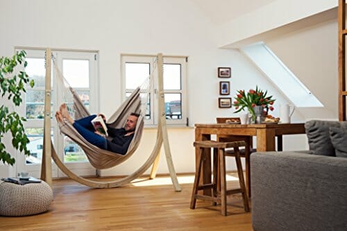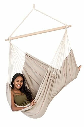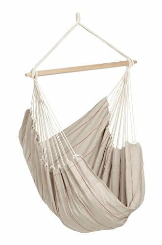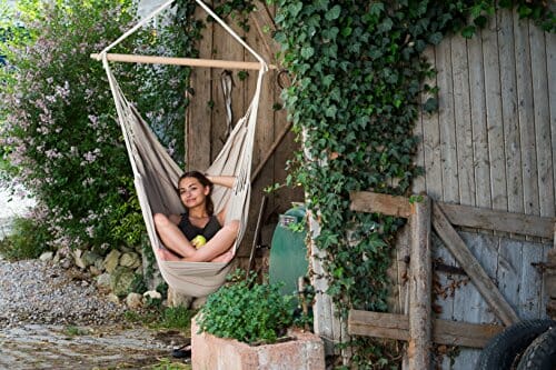 AMAZONAS XL fotel wiszący wykonany ręcznie w Brazylii Artista Sand z poprzeczką z drewna bukowego FSC 10 cm do 150 kg w kolorze jasnobeżowym