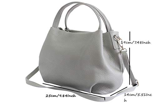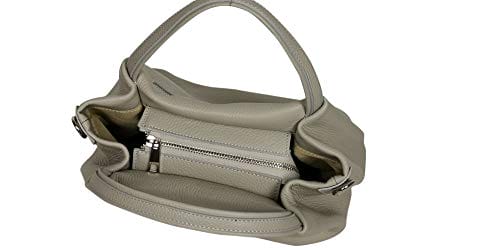 Einzelheiten: Damen Handtasche Henkeltasche aus weichem genarbtes it. Leder. Das geräumiges Hauptfach werd mit Reißverschluss geschlossen. Innen eine seitliche Reißverschlusstasche und 2 Einsteckfäche aus Stoff für Ihre Handy und kleine Sachen. Außen eine Reißverschlusstasche. 2 kurze Henkeln sind ca. 30 cm lang. Der lange Schultergurt ist verstellbar bis ca. 1m 20cm. So kann man die Tasche auch bequem als Schultertasche oder Umhängetasche tragen. Maße der Tasche: L 25 cm x H 19 cm x B 14 cm. Gewicht ca. 550 gr. *** AmbraModa ist eine eingetragene Marke.