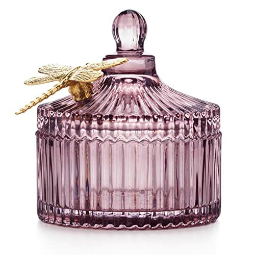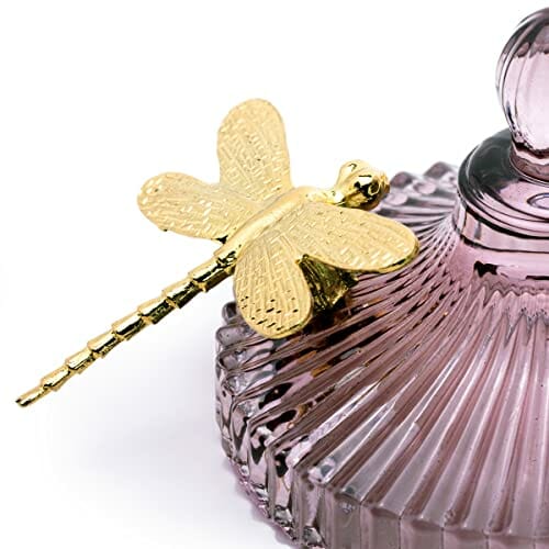 AmeliaHome Organizer Zamykany Szklany Przechowywanie Ważka 10,5×11,9 cm Brudnoróżowy Dragonfly