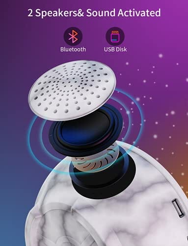 • Najnowszy odczyt Bluetooth 5.0 i USB Disk: Możesz wybrać swoją ulubioną muzykę przez Bluetooth lub USB do odtwarzania. Wysokiej jakości muzyka i projekcje gwiazd tworzą romantyczną i uspokajającą atmosferę na nocnym niebie. Może stworzyć ciepłe i spokojne środowisko do spania, które pomoże Tobie lub Twoim dzieciom i niemowlętom lepiej spać.