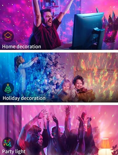 • Piękny prezent dla rodziny i dzieci: lampka nocna z projektorem gwiazd nadaje się na urodziny, imprezę, wesele, jako dekoracja pokoju, Dzień Dziecka, Boże Narodzenie, prezent jubileuszowy, tworzy wspaniałą i czystą atmosferę, w której dzieci pobudzają ciekawość, wyobraźnię i kreatywność. Idealny do dekoracji wnętrz jako projektor fal oceanu, romantyczne nastrojowe światło, lampka nocna i lampka nocna.
