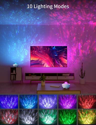 • Projektor gwiazd + projektor LED: wprowadź galaktykę do wnętrza i zrób wrażenie dzięki jasnemu pokazowi świetlnemu Aurora. Najnowsza lampa projektora natychmiast wyświetla pole drifujących gwiazd na zmieniającej się niebieskiej chmurce mgły z 10 dynamicznymi projekcjami obrotowymi 360°. Jedyny w swoim rodzaju sposób na oświetlenie imprezy, ożywienie miejsca pracy lub romantyczną kolację dla dwóch osób. Działa również jako jedyne w swoim rodzaju światło nocne.
