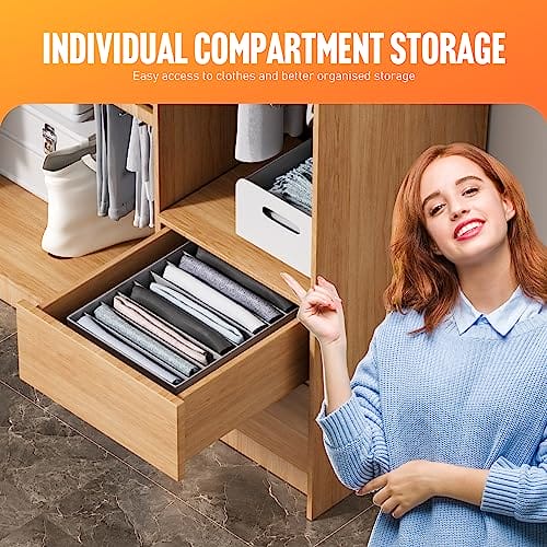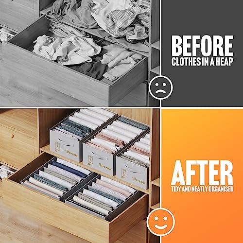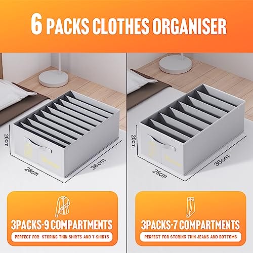 • 6-częściowy organizer na ubrania: ten organizer do szafy z szufladami to 6-częściowy zestaw 3 x 36*28*20 cm i 3 x 36*25*20 cm. pozwala na schludne przechowywanie ubrań i spodni, a wytrzymały materiał można układać w stosy, aby maksymalnie wykorzystać przestrzeń w szafie.