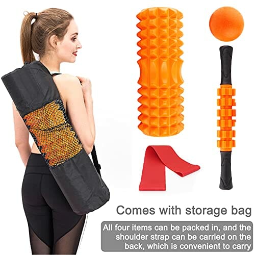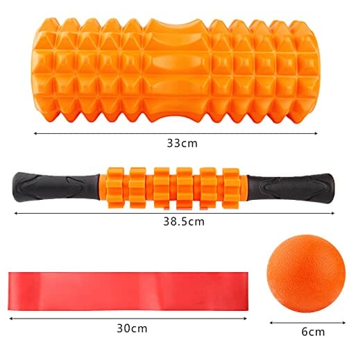 Amzeeniu Wałek do masażu powięzi – zestaw 5 w 1, taśma fitness, wałek z pianki – poprawa tkanki łącznej