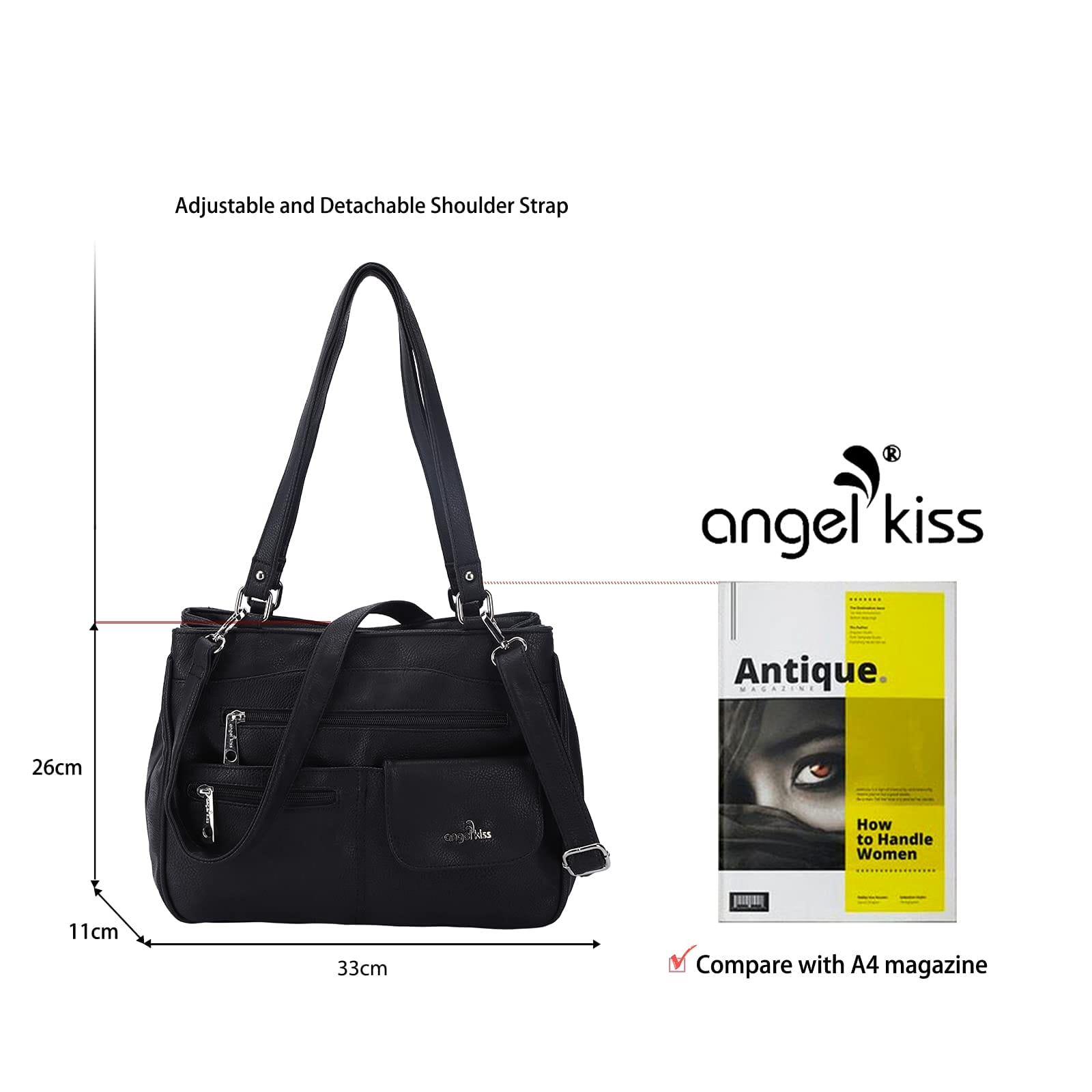 - 【GRÖSSE】Geeignete Größe : 33cm x 11cm x 26cm. Gewicht:1 kg. Die große Handtasche bietet Platz für brieftaschen, regenschirm, iPad, 13.3″ Laptop ,A4 magazine, handys, kosmetik und vieles mehr portieren.