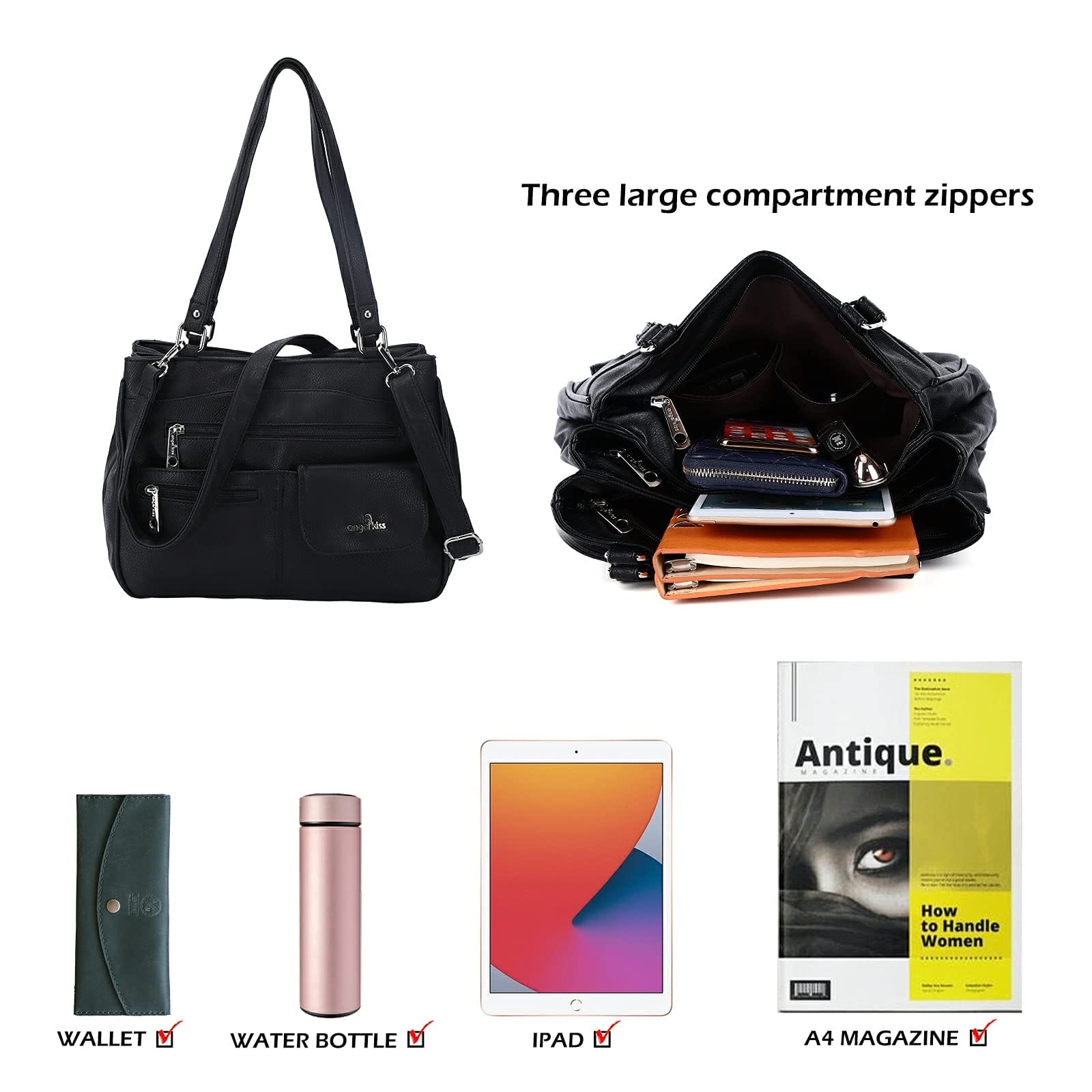 - 【VIELEN FÄCHERN】Drei große Hauptfächer + Reißverschlussfach innen + 2 inne kleine Tasche + 3 Vordertaschen + eine hintere Reißverschlusstasche. Sie können die Dinge gut organisieren, Halten Sie Ihre täglichen Artikel gut organisiert. Diese Schultertasche ist der perfekte Begleiter für jeden Tag, ob zur Arbeit, in der Freizeit oder zum Shopping.