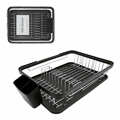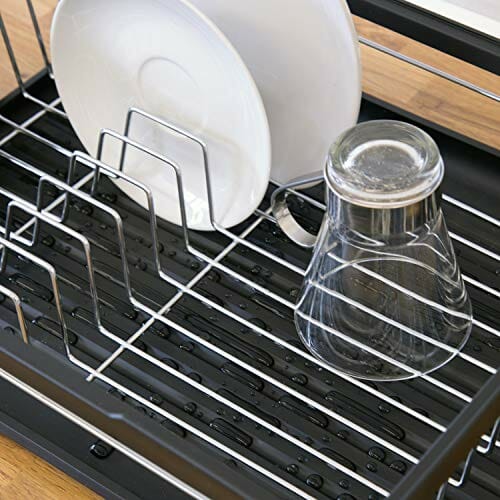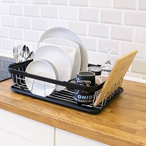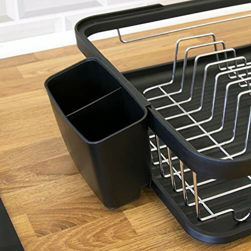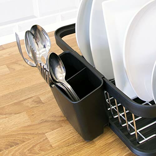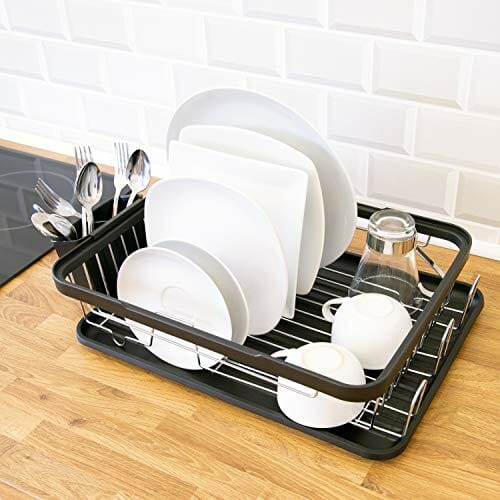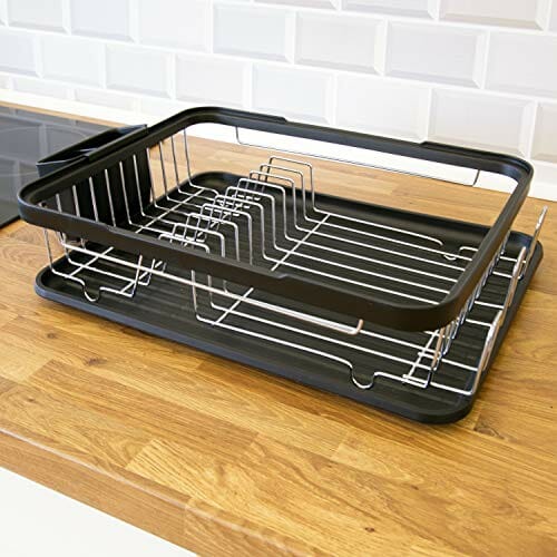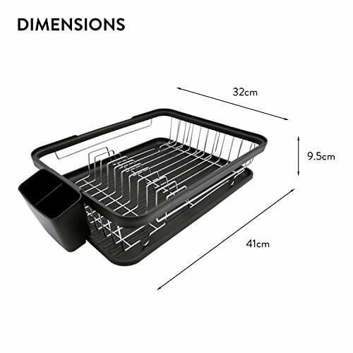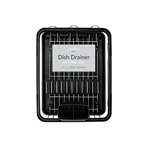 Ociekacz do naczyń kuchennych Anika 69049 – czarny, wyjmowana taca ociekowa, uchwyt na sztućce – 41x32x9,5 cm