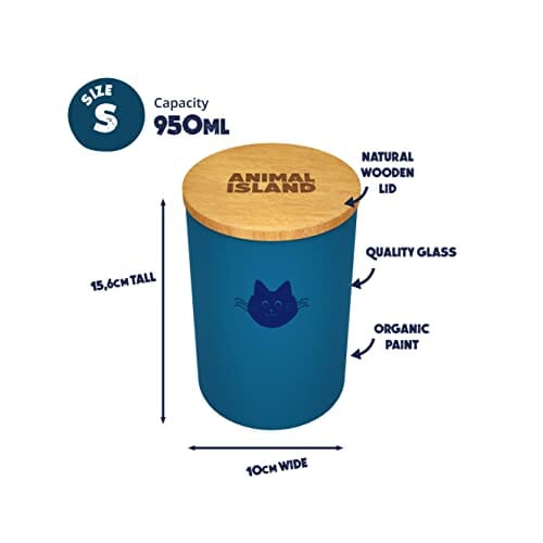 Szklany Pojemnik na Karmę dla Kotów z Drewnianym Wieczkiem Przechowywanie Pokarmu dla Zwierząt Domowych Pojemnik ze Szkła Pokrywka z Drewna Sucha Karma (950 ml, Deep Sea Blue)