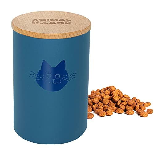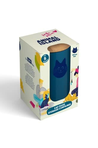• Pojemnik na karmę dla kota: nasze pojemniki na suchą karmę dla kotów z drewnianym wieczkiem dostępne są w dwóch rozmiarach: S (pojemność: 950 ml) i M (pojemność: 3000 ml) oraz w trzech kolorach: Cool Gray, Cashmere Pink i Deep Sea Blue