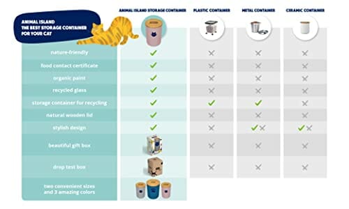 • Wysoka jakość: nasze szklane pojemniki na pokarm dla zwierząt wykonane są z wysokiej jakości szkła. Pokrywka z drewna bukowego jest olejowana olejem spożywczym oraz grawerowana. Stanowi ona szczelne zamknięcie, dzięki któremu karma zachowuje dłużej świeżość i smak