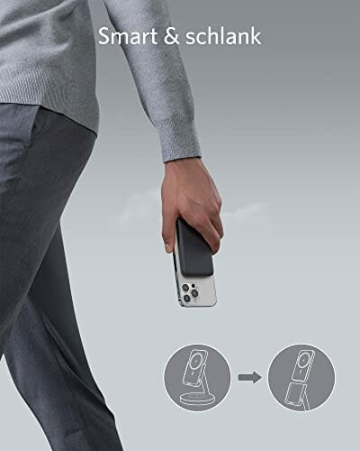 • Co dostajesz: magnetyczną bezprzewodową ładowarkę Anker 633 (MagGo) z podstawą do ładowania bezprzewodowego i przenośną ładowarką bezprzewodową o pojemności 5000 mAh, zasilacz 25 W USB-C, kabel USB-C o długości 1,5 m, przewodnik powitalny, 24-miesięczną bezstresową gwarancję oraz przyjazną obsługę klienta.
