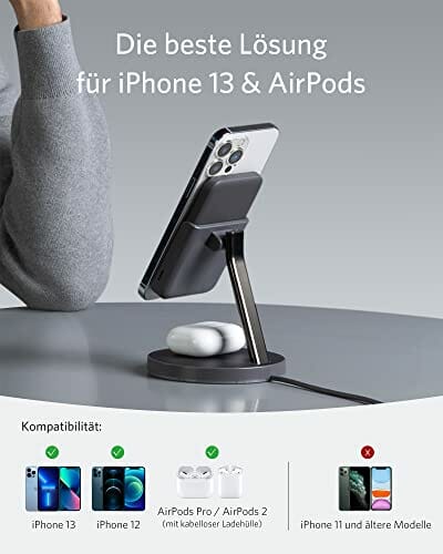 Anker 633 (MagGo) Magnetyczna ładowarka bezprzewodowa, stacja ładująca 2 w 1, odłączana przenośna ładowarka, dla iPhona 13/12 i AirPods Pro (szary międzygwiezdny)