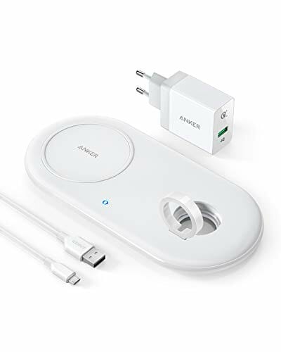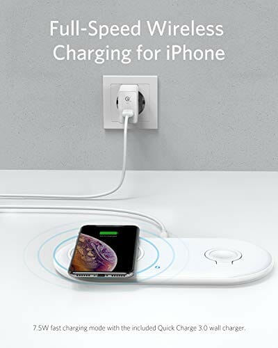Anker PowerWave+ ładowarka ze stacją dokującą do smartwatchów i telefonów iPhone, certyfikat Qi, kompatybilna z zegarkami Apple Watch serii 4/3/2, szybkie ładowanie z iPhone XS / XS Max / XR / X / 8 Plus