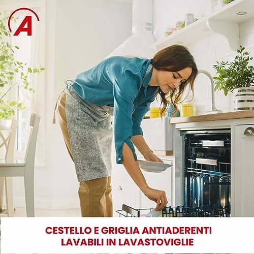 • Herausnehmbarer Behälter und Antihaftgitter spülmaschinenfest, Maße 19,5 x 19,5 cm