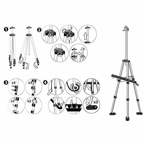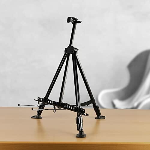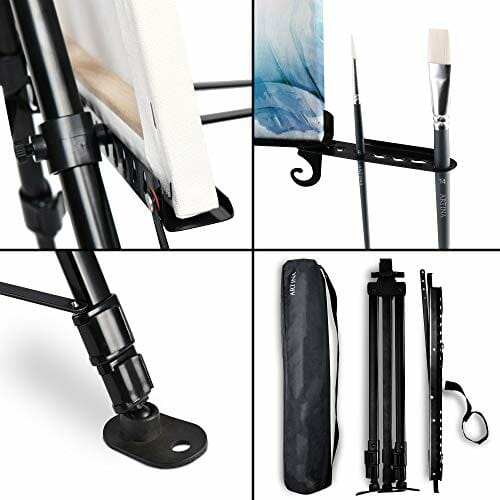Artina Paris Stabilny i przenośny aluminiowy mostek – 82 cm sztalugi do malowania na płótnie – Lekki sztalug malarski, regulowany ciągły i zintegrowany uchwyt na szczotkę.