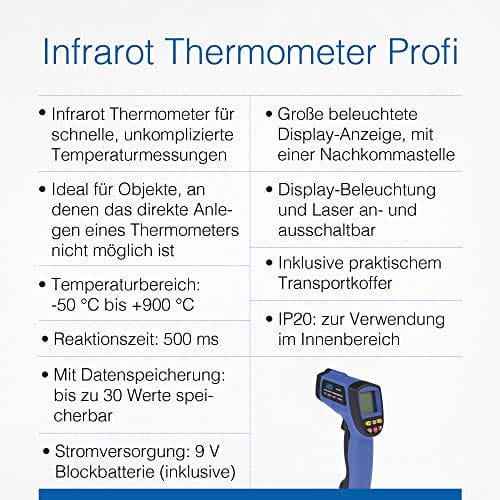 Ten termometr as – Schwabe 24102 Profesjonalny Termometr Na Podczerwień IP20 -50 Do 900° C Czarny/Niebieski jest idealnym wyborem dla profesjonalistów, którzy potrzebują precyzyjnego i niezawodnego narzędzia do pomiaru temperatury. Niezależnie od tego, czy jesteś elektrykiem, mechanikiem czy majsterkowiczem, ten termometr pomoże Ci w monitorowaniu temperatury w sposób łatwy i skuteczny.