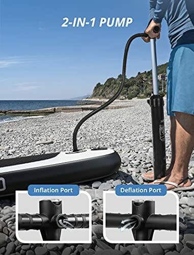 • 【Łatwa obsługa】Nadmuchiwana deska do wiosłowania AKASO jest bardzo łatwa w montażu za pomocą podwójnej pompki ręcznej z manometrem, co pomaga napompować deskę do 15 psi tylko w ciągu 5 minut! (30% szybciej niż inne). Po 5-8 minutach spuszczenia deskę dmuchaną można złożyć do rozmiaru przyjaznego w podróży dla łatwego przechowywania.