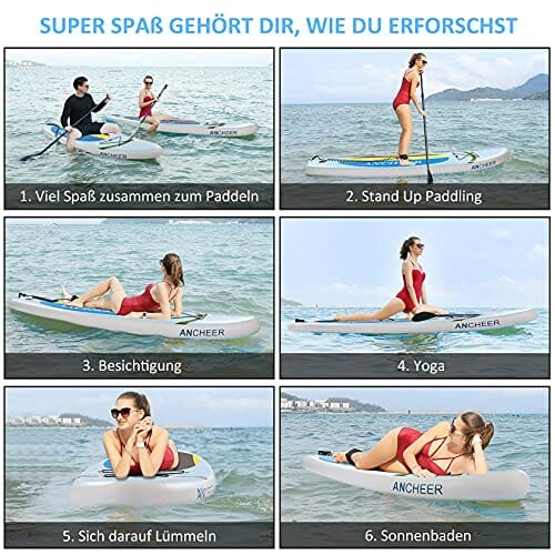 • Wymiary tej deski SUP: 305 x 76 x 15 cm, maks. Obciążenie: 130 kg, nadmuchiwana deska SUP waży 9 kg, bardzo łatwa do przenoszenia. Nadmuchiwanie < 5 min, spuszczanie < 3 min, maks. PSI: 15