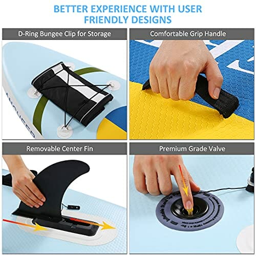 • Doskonałe wzornictwo iSUP z 3 mieczami dla dodatkowej stabilności, ta deska SUP jest łatwa w obsłudze. Ponadto jest to idealne wyposażenie do sportów wodnych, cruisingu, jogi, wędkowania na płaskich wodach.